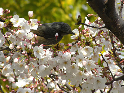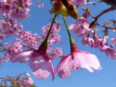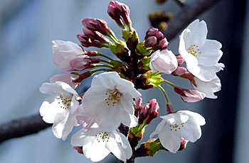 | ソメイヨシノなどの品種より ずいぶん早く満開になるようです。 | |