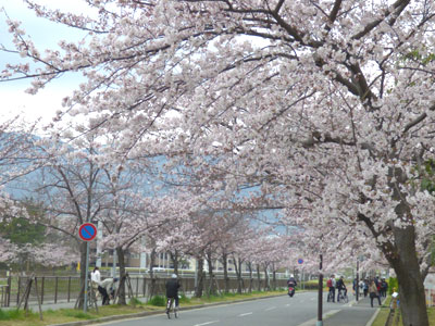 | 5〜8分咲き | 満開になったサクラ並木 |