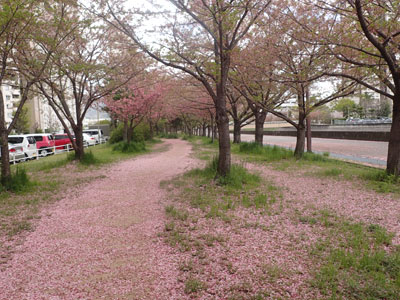 4/18 4月中旬 ソメイヨシノは葉桜となり、あたりはピンク色のじゅうたんに。