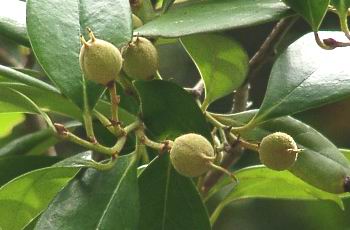果実は核果、球形で長さ6mmほど。 樹木ウォッチング クロガネモチのページもご覧ください。 |