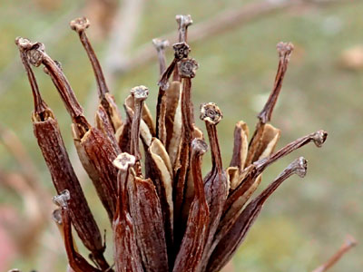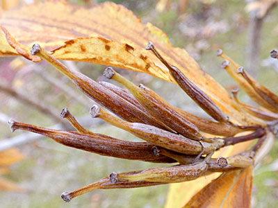 1/11 西浜公園の庭でユニークな形をしたハコネウツギの果実に出会いました。