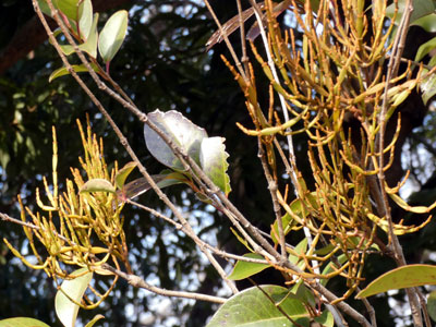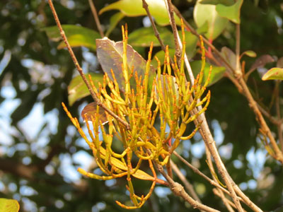 トウネズミモチの木にヒノキバヤドリギが寄生 半寄生の常緑小低木で高さ20cmほどになる 以前見たヒノキバヤドリギはこちら |