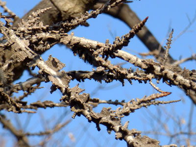 ここで見るモミジバフウの枝はコルク質の翼が発達していて ゴツゴツしたユニークな形を見せている |