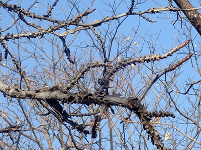 1/12 西浜公園では落葉したモミジバフウのゴツゴツした枝が印象的でした。
