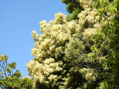 | 雌雄同株。黄色い雄花が咲きだしてスダジイの存在が遠くからでもよく分かる。 | |