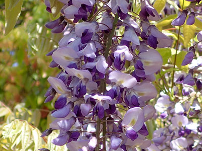 枝先に長さ20〜30cmの総状花序が垂れ下がり、 長さ1.5〜2cmの紫色の蝶形花が多数つける。 |