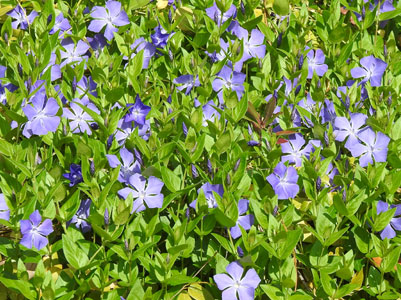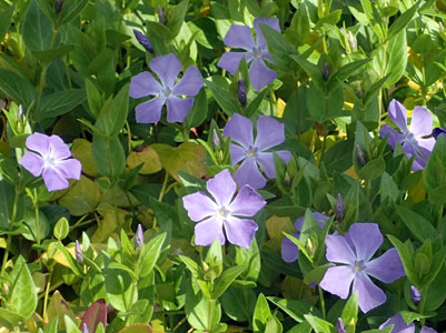 4/4 西浜公園の近くではツルニチニチソウの花が一斉に咲き出していました。