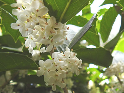 葉腋に香りよい白い花を束生、花は直径8〜10mm。 |