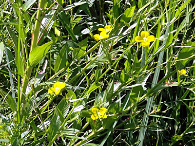 直径3cmほどの黄色い4弁花をつける。 茎は4稜を持ち直立してよく分岐している。 |