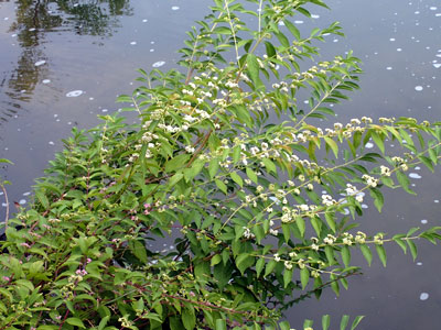 雌雄別株。雄株でしょうか・・・? 果実/果嚢は直径約2cmの球形。10〜11月、黒紫色に熟す。 |