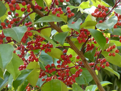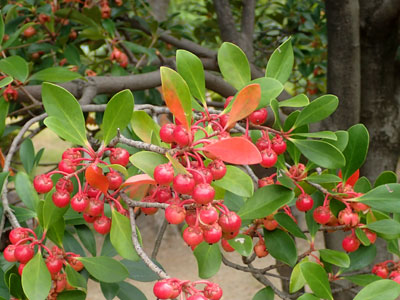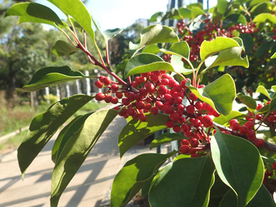 10/17 西浜公園ではクロガネモチの果実が赤く色づいてきました。