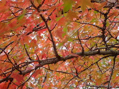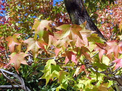 10/30 モミジバフウの紅葉が鮮やかになってきました。