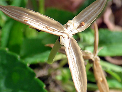 | 3裂したボート型の果皮にあった種子が弾けて跳んだ跡 | |