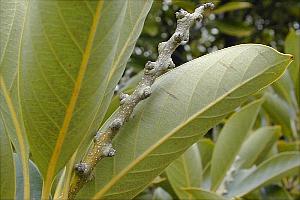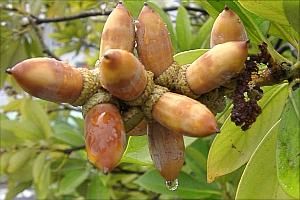 この写真はマテバシイの冬芽 (冬芽には雌花、雄花、新しい葉がはいっています)