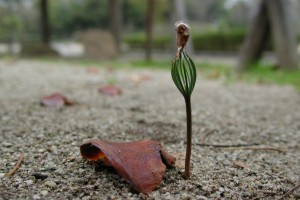 4月のはじめ、初冬に見たヒマラヤスギの種子が発芽していました。