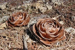 冬の中央公園に大きな球果がバラバラになって、地面にたくさん落ちてきていました。