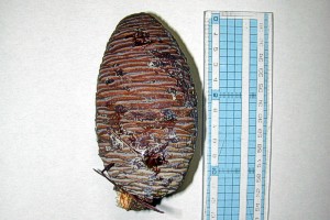 上の写真の球果は 11/6 中央公園で ヒマラヤスギの剪定中に拾った 大きなマツボックリ |