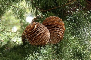 ヒマラヤスギの球果(マツ科) 夏ごろから球果が大きくなってきます。 秋に成熟した球果の大きさは 縦が8cm〜12cm 幅が5cm〜7cm |