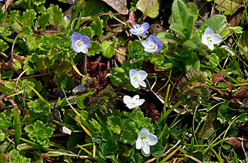 オオイヌノフグリ、フラサバソウ、 ヒメオドリコソウ、ノゲシ(ハルノノゲシ)
