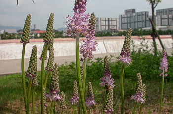 花はピンク色、多数集まって穂となっている。 ツルボの意味は不明だが 別名サンダイガサは「参内傘」で、 花穂をむかし公卿が参内する時に 供人が持ったたたんだ傘に見立てたとある。 |