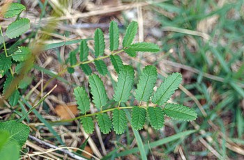 葉は5〜13の小葉からなり、小葉の柄の付け根に葉片がついている。 |