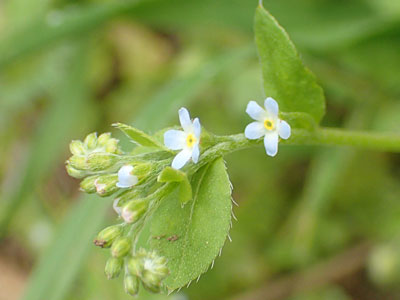 | 花冠は径4〜5mm、淡青紫色。葉は互生でまばらに毛がめだつ。 | |