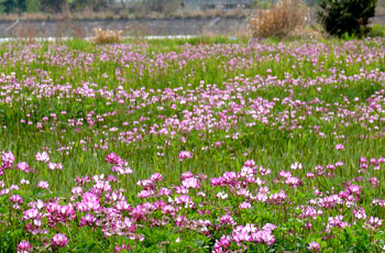 レンゲ畑が広がる田園 |