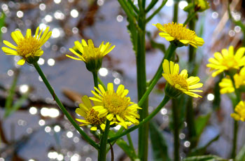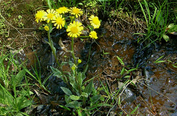 湿地に生える多年草 頭花は径3.5〜4.5cm 総包片は一列、舌状花も一列で黄色 |