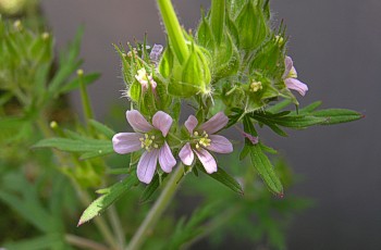 花の色は淡いピンク色 花径は3〜4cm 葉の先はとがり気味、葉の基部の形に特徴 |