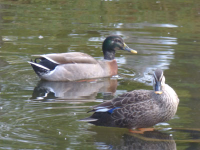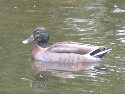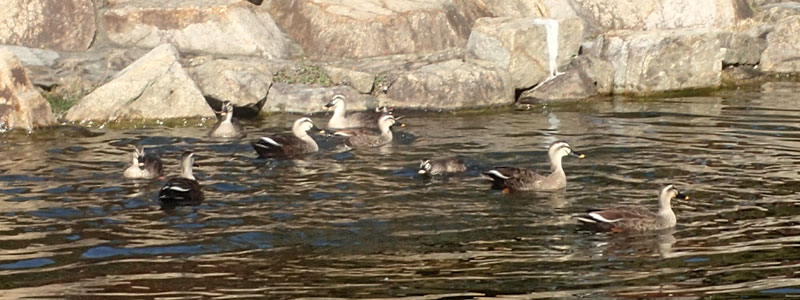この池には常にカルガモが多数いて、西浜公園の池は鴨池になったかな? この日はやんちゃなマガモ1羽が混じっていて、カルガモ追っかけまわしていました。 |
