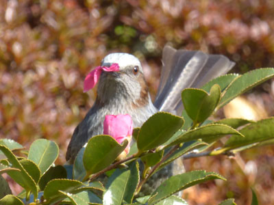 3月になり宮川河口では頭部が黒く夏羽になりつつあるユリカモメ、西浜公園ではサザンカの花びらを食べるヒヨドリを見ました。