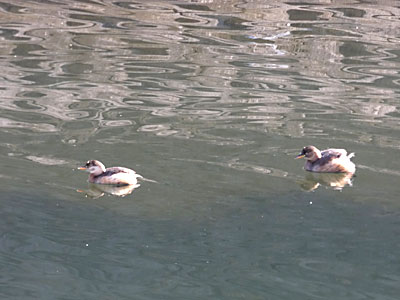 1/30 2羽のカイツブリに出会いました。 前日1羽のカイツブリが 水面下をスイスイーと泳ぐ姿を見ていました。 |