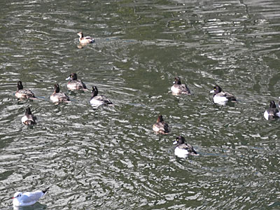 この日は10数羽に出会いました。 数年前から この河口で 常連客のキンクロハジロ |