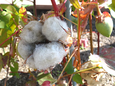 10/26 ワタの木の果実が割れて中から白い綿毛が出ていました。