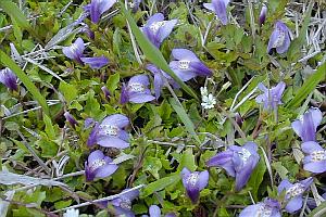 茎はほぼ直立して高さ10〜30cm 花は柄が無く、花径は3〜4mm、コバルト色 |