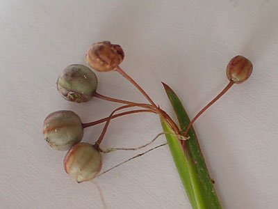 | 花被の下に緑色の果実。 果実は径3mm、球形。 | |