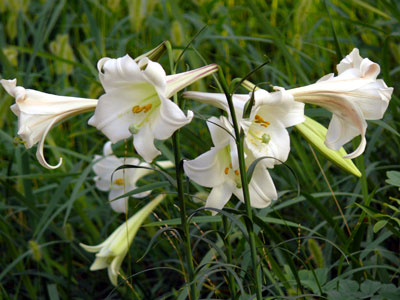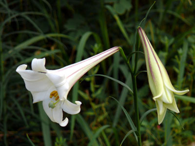 テッポウユリとタカサゴユリの交雑種と言われている シンテッポウユリでしょうか? |