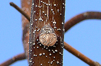 頂芽は3cmほど、芽鱗は樹脂でベトベトしている 芽鱗痕は環状 |