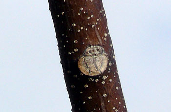 冬芽は長さ7mmほど楕円形。先端は尖る。 |